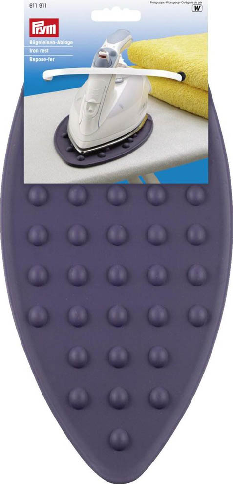 Die Bügeleisen‑Ablage aus pflaumenblauem Silikon bietet eine flexible Möglichkeit zum kurzfristigen Abstellen des heißen Bügeleisens. Auf der bügeleisenförmigen Unterlage mit Noppen hat das Bügeleisen einen sicheren Stand und ist bei der Arbeit immer in greifbarer Nähe. Gerade beim Bügeln mit Dampf möchte man das Bügeleisen lieber waagerecht abstellen, aber auch bei Verwendung der Bügeldecke ist dieser Untersetzer äußerst praktisch und sicher.