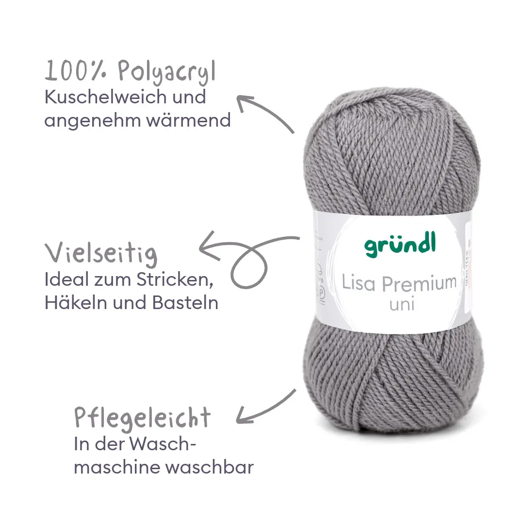 Alle lieben Lisa! Unsere Lisa Premium Uni ist nicht nur äußert empathisch und aufgeschlossen, sie versteht sich einfach mit allen! Ihre Mission ist es, dass sich alle bei ihr gut aufgehoben fühlen. Und deshalb mögen wir sie auch so sehr. Das Garn mit seinem wollartigen Charakter ist wärmend und weich zugleich. Es ist sehr pflegeleicht und problemlos waschbar. Lisa Premium trocknet rasch und ist sehr formbeständig. Du wirst die klaren, brillanten Farben lieben! Liebste Lisa, schön, dich in unserer Familie zu haben. Wir freuen uns schon auf wunderbare Kreativ-Abenteuer mit dir, du unglaubliches Universalgarn!