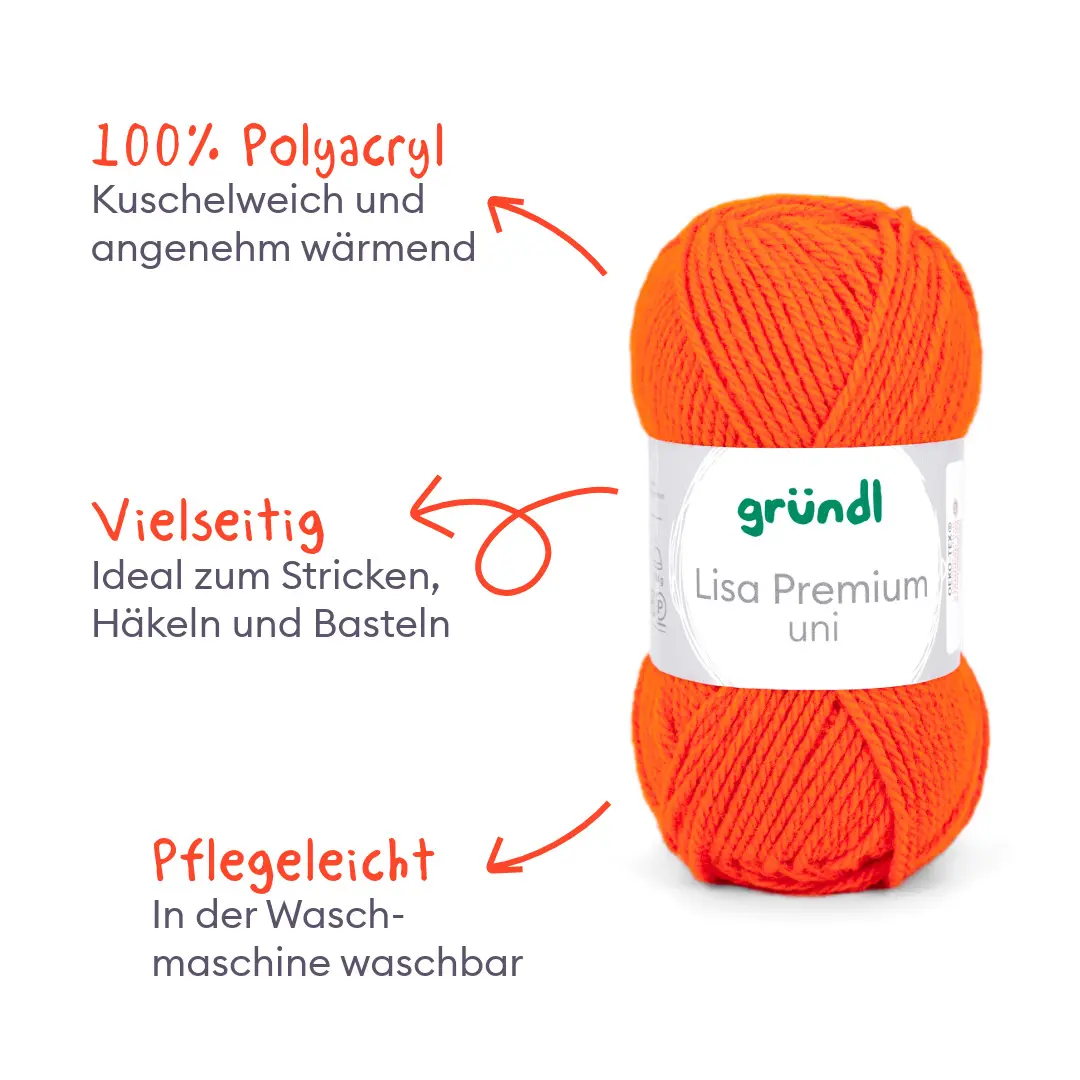 Alle lieben Lisa! Unsere Lisa Premium Uni ist nicht nur äußert empathisch und aufgeschlossen, sie versteht sich einfach mit allen! Ihre Mission ist es, dass sich alle bei ihr gut aufgehoben fühlen. Und deshalb mögen wir sie auch so sehr. Das Garn mit seinem wollartigen Charakter ist wärmend und weich zugleich. Es ist sehr pflegeleicht und problemlos waschbar. Lisa Premium trocknet rasch und ist sehr formbeständig. Du wirst die klaren, brillanten Farben lieben! Liebste Lisa, schön, dich in unserer Familie zu haben. Wir freuen uns schon auf wunderbare Kreativ-Abenteuer mit dir, du unglaubliches Universalgarn!