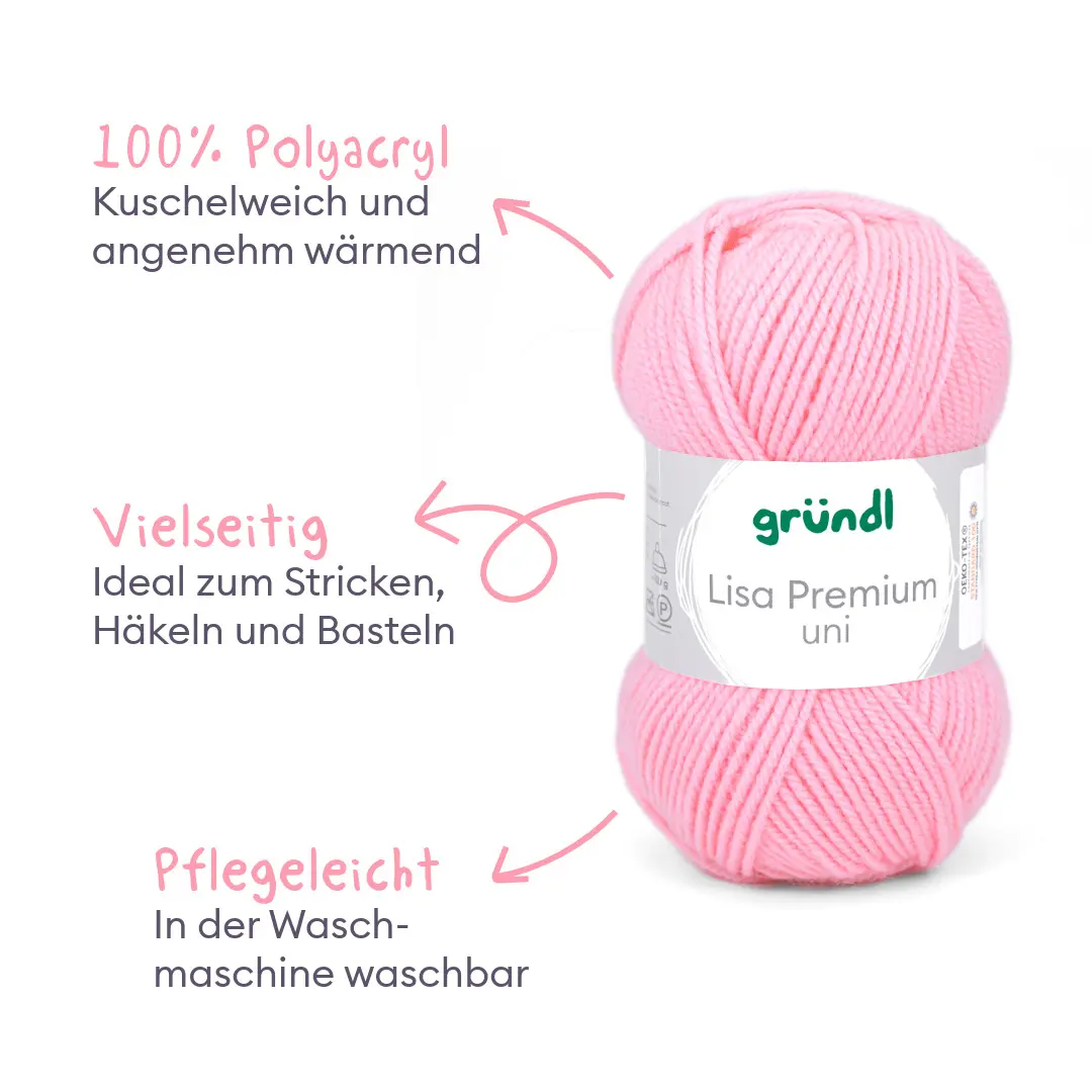Alle lieben Lisa! Unsere Lisa Premium Uni ist nicht nur äußert empathisch und aufgeschlossen, sie versteht sich einfach mit allen! Ihre Mission ist es, dass sich alle bei ihr gut aufgehoben fühlen. Und deshalb mögen wir sie auch so sehr. Das Garn mit seinem wollartigen Charakter ist wärmend und weich zugleich. Es ist sehr pflegeleicht und problemlos waschbar. Lisa Premium trocknet rasch und ist sehr formbeständig. Du wirst die klaren, brillanten Farben lieben! Liebste Lisa, schön, dich in unserer Familie zu haben. Wir freuen uns schon auf wunderbare Kreativ-Abenteuer mit dir, du unglaubliches Universalgarn!