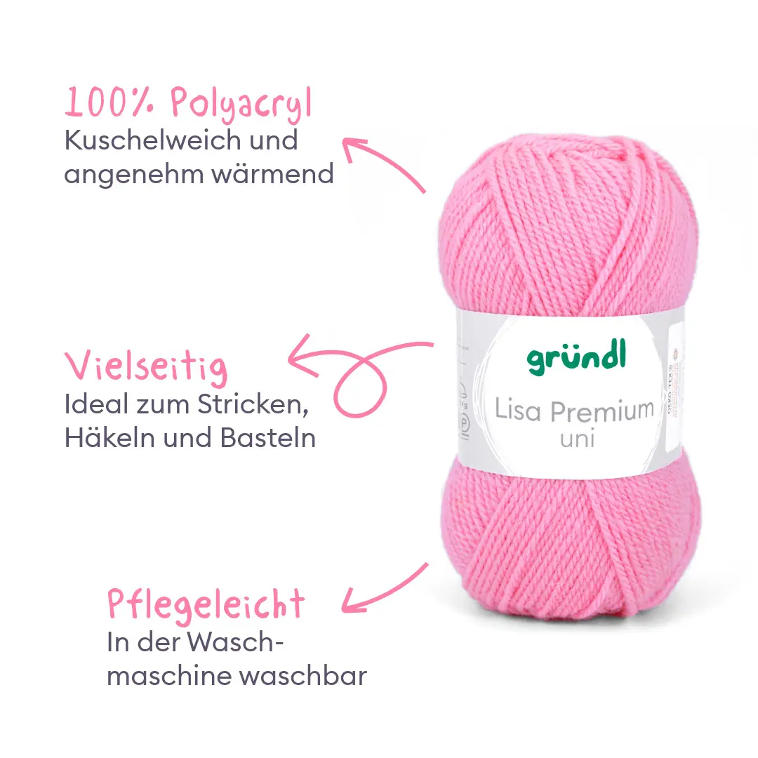 Alle lieben Lisa! Unsere Lisa Premium Uni ist nicht nur äußert empathisch und aufgeschlossen, sie versteht sich einfach mit allen! Ihre Mission ist es, dass sich alle bei ihr gut aufgehoben fühlen. Und deshalb mögen wir sie auch so sehr. Das Garn mit seinem wollartigen Charakter ist wärmend und weich zugleich. Es ist sehr pflegeleicht und problemlos waschbar. Lisa Premium trocknet rasch und ist sehr formbeständig. Du wirst die klaren, brillanten Farben lieben! Liebste Lisa, schön, dich in unserer Familie zu haben. Wir freuen uns schon auf wunderbare Kreativ-Abenteuer mit dir, du unglaubliches Universalgarn!