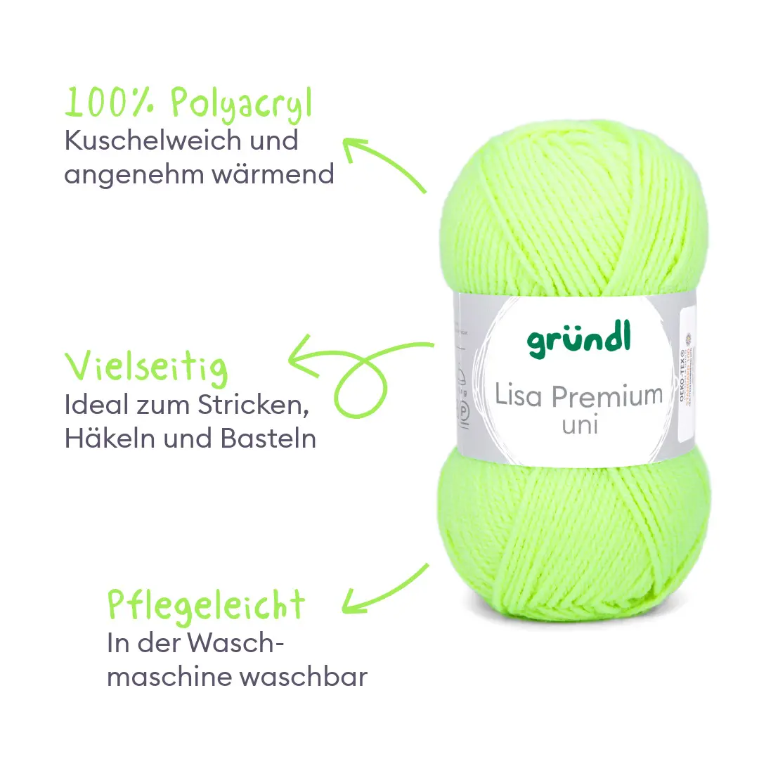 Alle lieben Lisa! Unsere Lisa Premium Uni ist nicht nur äußert empathisch und aufgeschlossen, sie versteht sich einfach mit allen! Ihre Mission ist es, dass sich alle bei ihr gut aufgehoben fühlen. Und deshalb mögen wir sie auch so sehr. Das Garn mit seinem wollartigen Charakter ist wärmend und weich zugleich. Es ist sehr pflegeleicht und problemlos waschbar. Lisa Premium trocknet rasch und ist sehr formbeständig. Du wirst die klaren, brillanten Farben lieben! Liebste Lisa, schön, dich in unserer Familie zu haben. Wir freuen uns schon auf wunderbare Kreativ-Abenteuer mit dir, du unglaubliches Universalgarn!