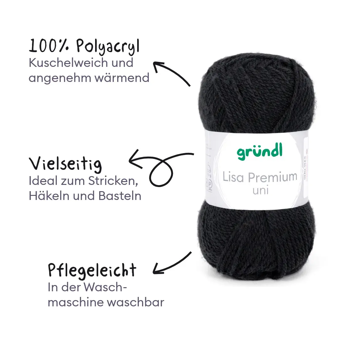 Alle lieben Lisa! Unsere Lisa Premium Uni ist nicht nur äußert empathisch und aufgeschlossen, sie versteht sich einfach mit allen! Ihre Mission ist es, dass sich alle bei ihr gut aufgehoben fühlen. Und deshalb mögen wir sie auch so sehr. Das Garn mit seinem wollartigen Charakter ist wärmend und weich zugleich. Es ist sehr pflegeleicht und problemlos waschbar. Lisa Premium trocknet rasch und ist sehr formbeständig. Du wirst die klaren, brillanten Farben lieben! Liebste Lisa, schön, dich in unserer Familie zu haben. Wir freuen uns schon auf wunderbare Kreativ-Abenteuer mit dir, du unglaubliches Universalgarn!