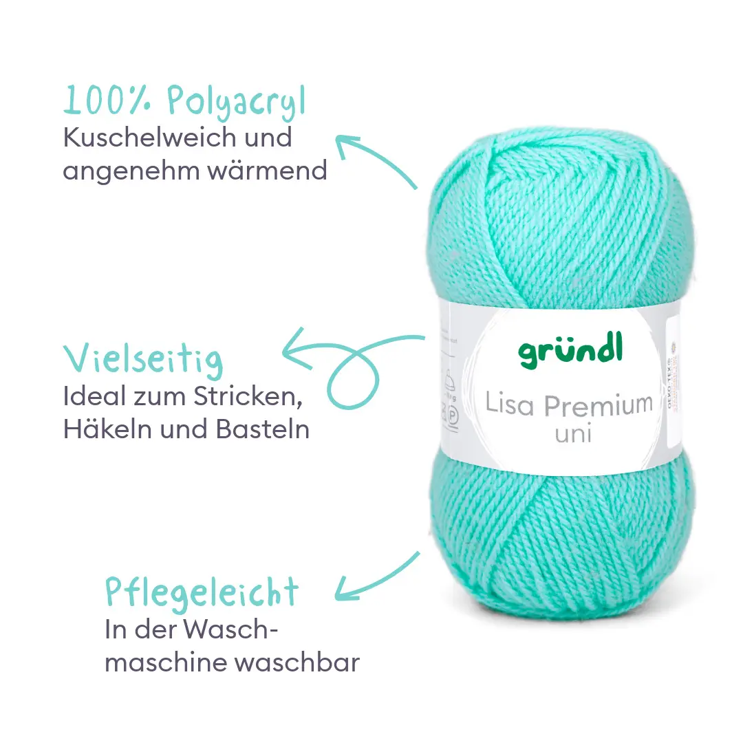 Alle lieben Lisa! Unsere Lisa Premium Uni ist nicht nur äußert empathisch und aufgeschlossen, sie versteht sich einfach mit allen! Ihre Mission ist es, dass sich alle bei ihr gut aufgehoben fühlen. Und deshalb mögen wir sie auch so sehr. Das Garn mit seinem wollartigen Charakter ist wärmend und weich zugleich. Es ist sehr pflegeleicht und problemlos waschbar. Lisa Premium trocknet rasch und ist sehr formbeständig. Du wirst die klaren, brillanten Farben lieben! Liebste Lisa, schön, dich in unserer Familie zu haben. Wir freuen uns schon auf wunderbare Kreativ-Abenteuer mit dir, du unglaubliches Universalgarn!