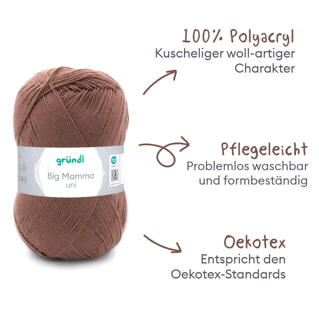 Mutti macht das schon, Mutti kann das! Unser Garn Big Mamma kennt sich einfach in allen Lebensbereichen aus. Es zeigt dir, wie du Pullover, Jacken, Westen für Erwachsene und Kinder strickst. Wie du Home-Deko wie Kissen, Nackenrollen, Decken zauberst. Auch Mützen, Schals und Handschuhe lernt sie dir. Und für die Kleinsten in der Familie: Das Garn Big Mamma begleitet alle Strickanfänger in der Schule und unterstützt im Bastelbereich. Danke Mama, dass du immer und überall für uns da bist!