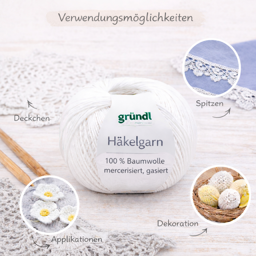 - Verwendung: Häkeln, Spitzenarbeiten, Dekorationen
