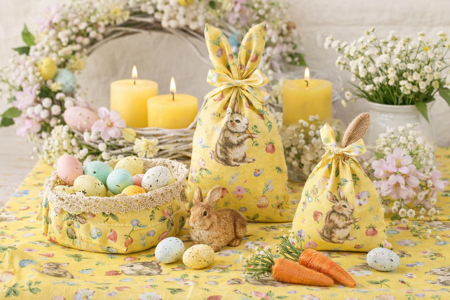 Osterdekoration (z. B. Tischdeko, Kissen, Körbchen)
