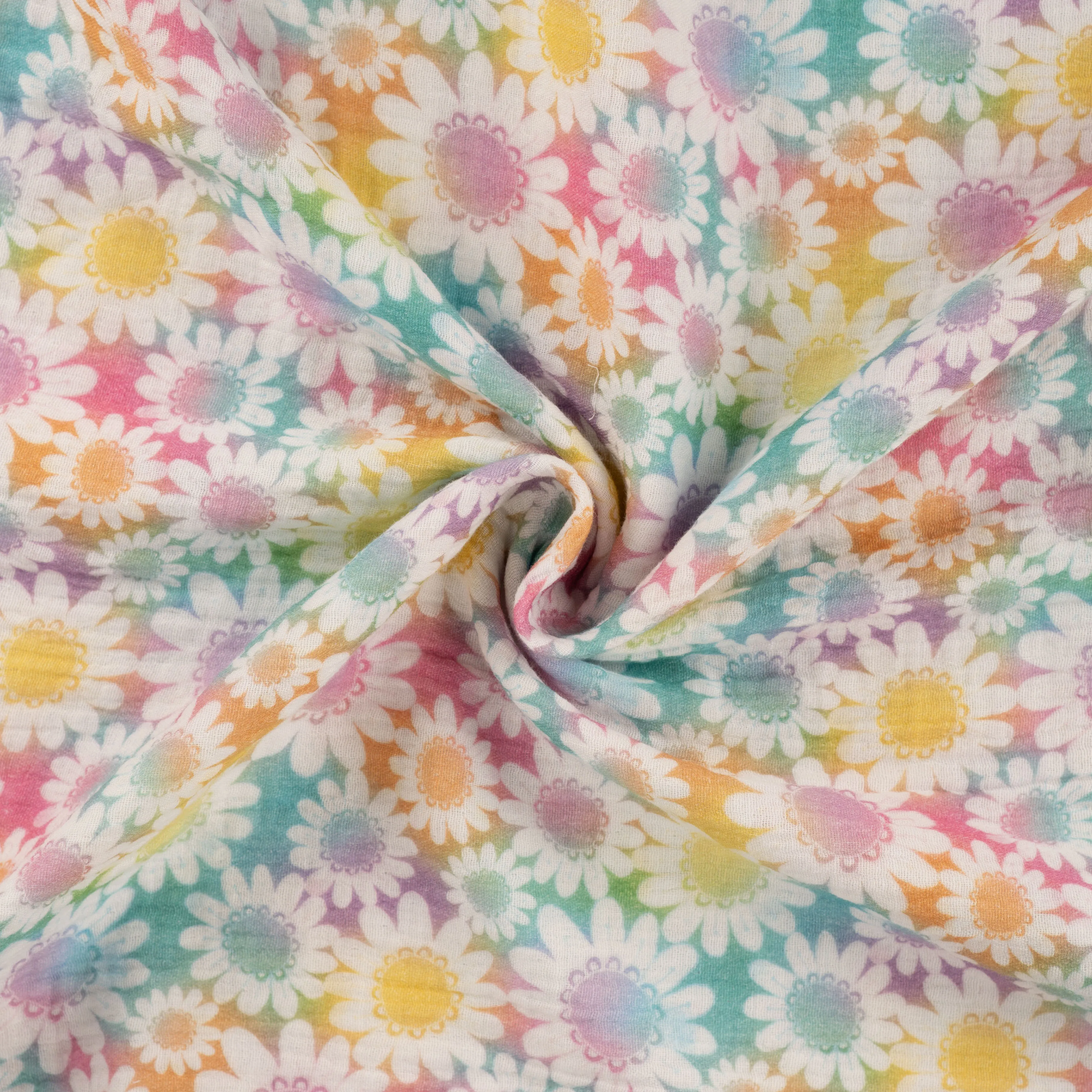 Product information "Musselin Bedruck, Regenbogenblümchen"