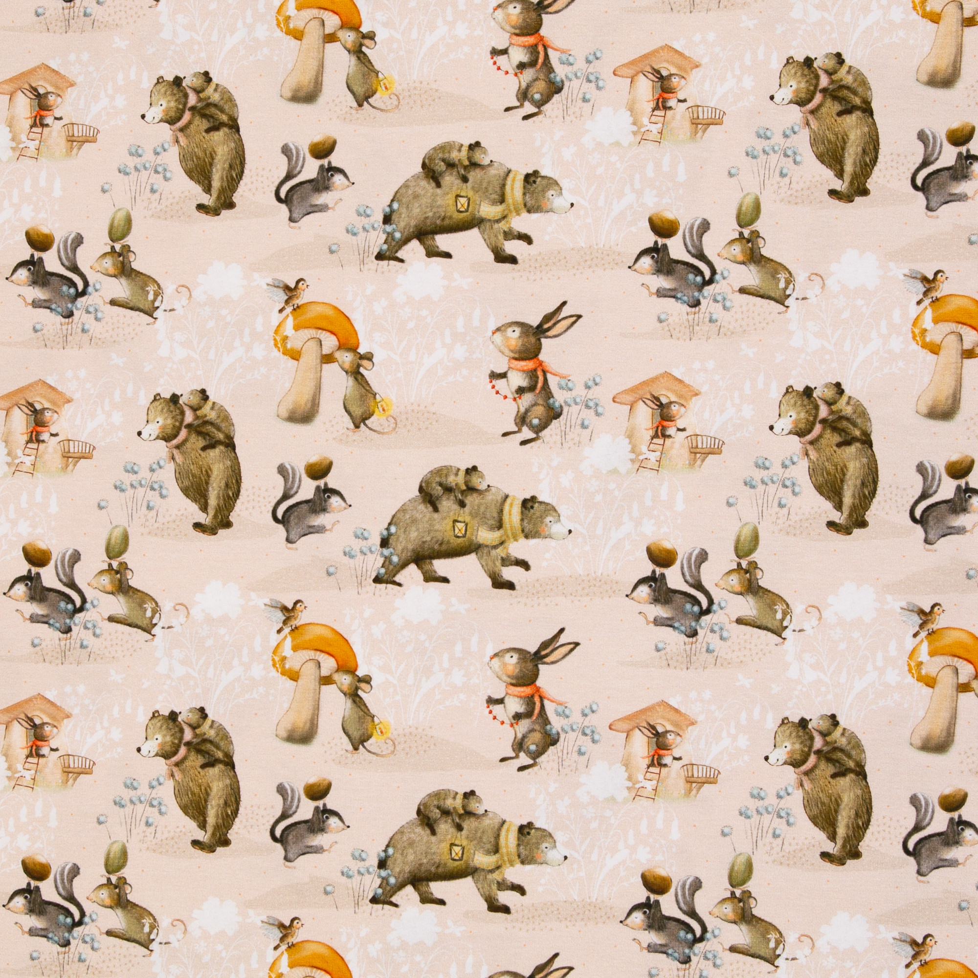 Baumwolljersey bedruckt mit Waldtieren ist ein pflegeleichter und vielseitig einsetzbarer Stoff. Er bietet eine sehr große Farbpalette mit vielen brillianten Farben. Diese sind ideal aufeinander abgestimmt, sodass sich die Stoffserien Heike, Eike, Meike und Vanessa perfekt ergänzen.