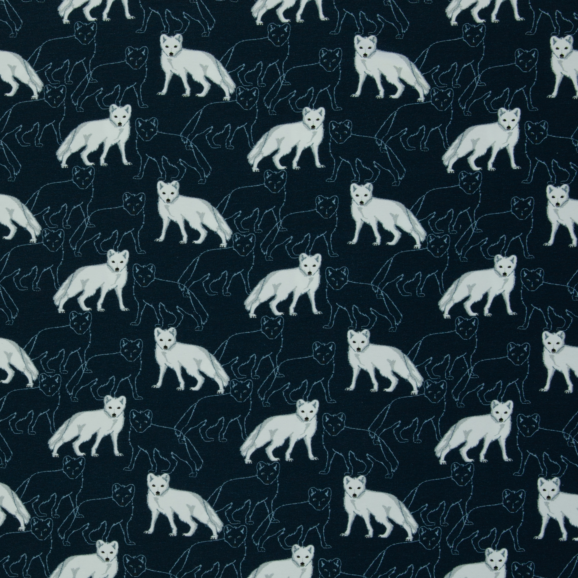 Baumwolljersey bedruckt mit arktischen Tieren ist ein pflegeleichter und vielseitig einsetzbarer Stoff. Er bietet eine sehr große Farbpalette mit vielen brillianten Farben. Diese sind ideal aufeinander abgestimmt, sodass sich die Stoffserien Heike, Eike, Meike und Vanessa perfekt ergänzen.