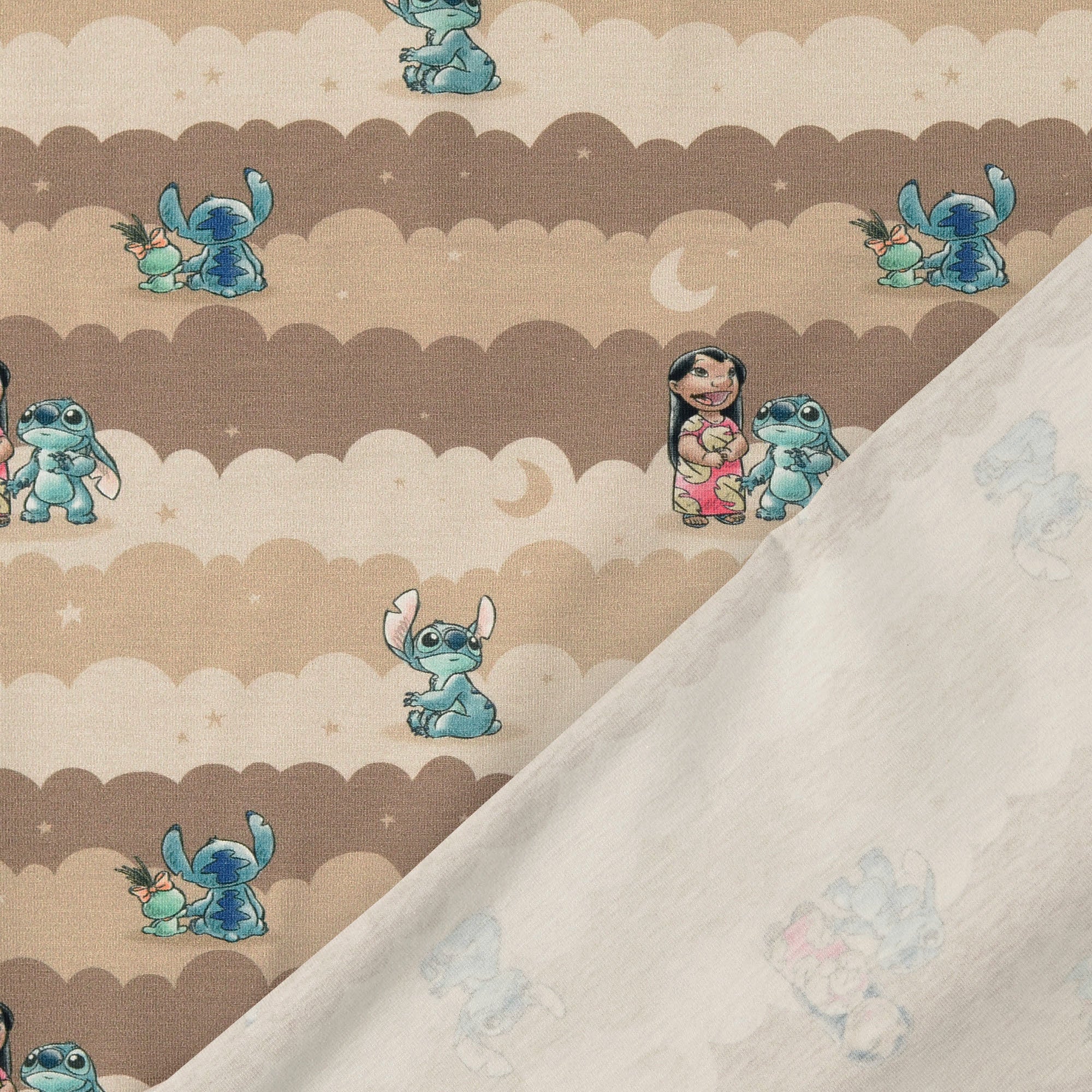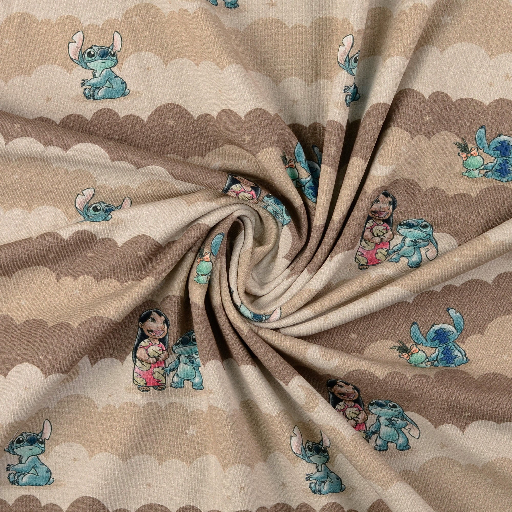 Unser Baumwoll Jersey mit Lilo & Stitch eignet sich hervorragend für Baby- und Kinderkleidung.
