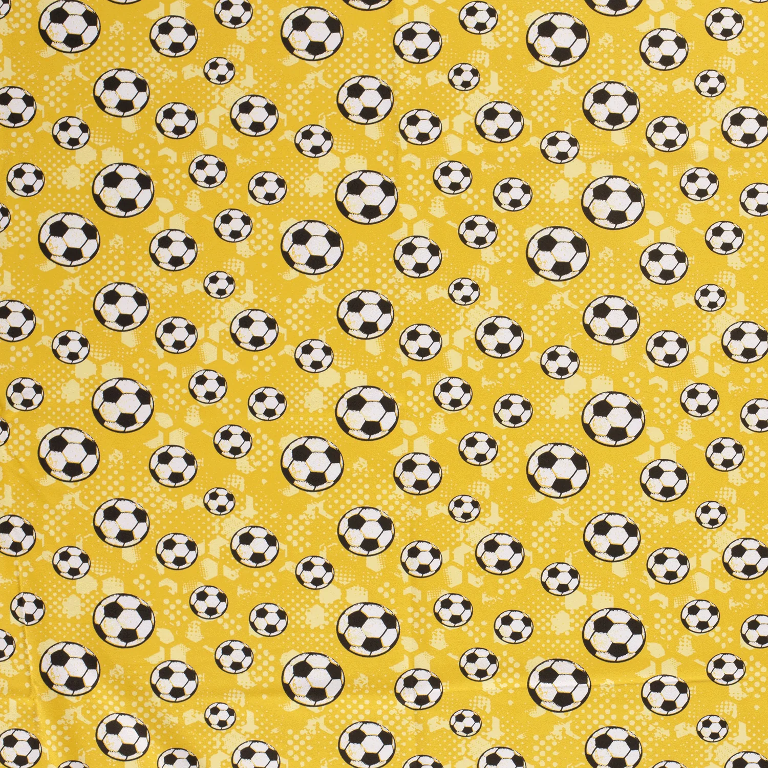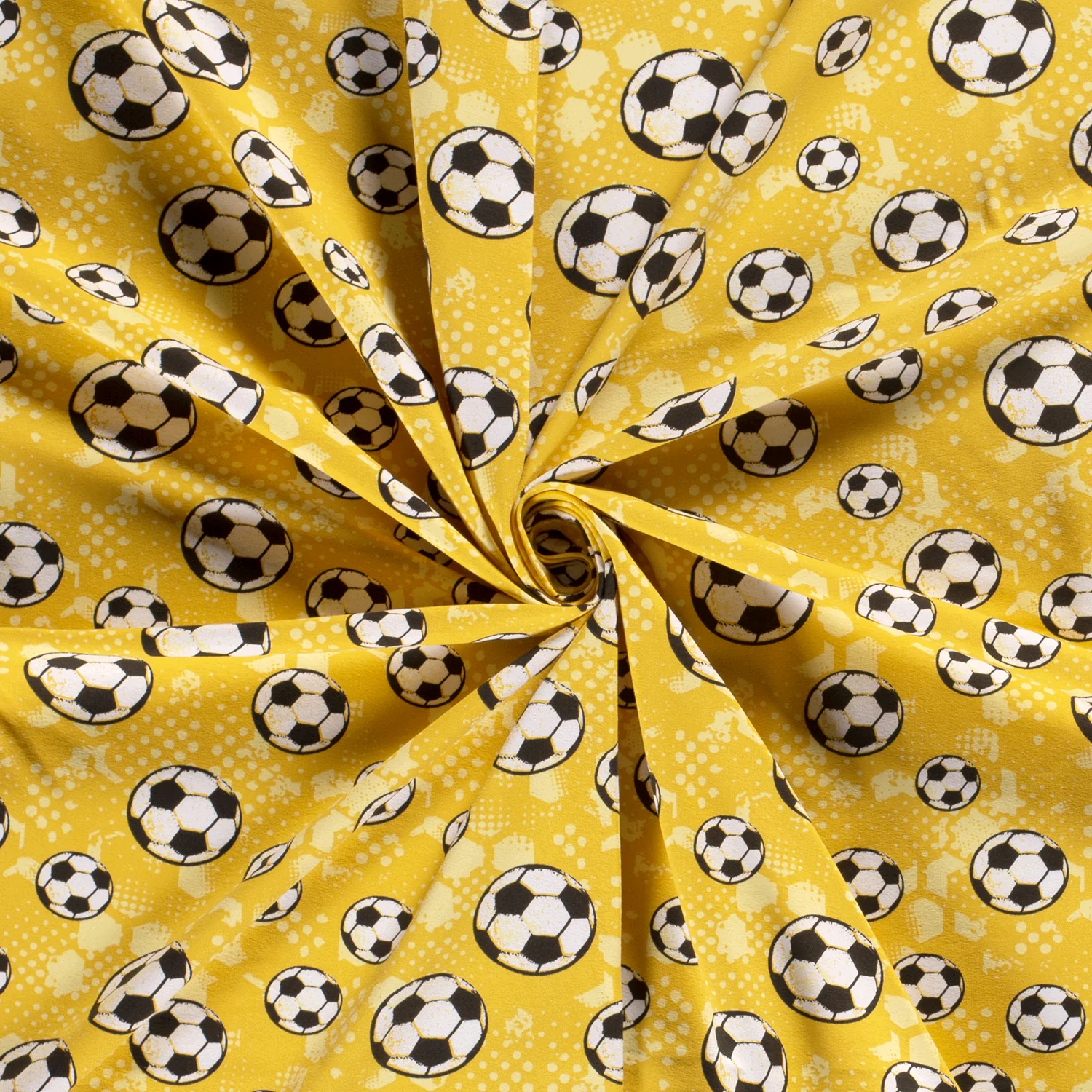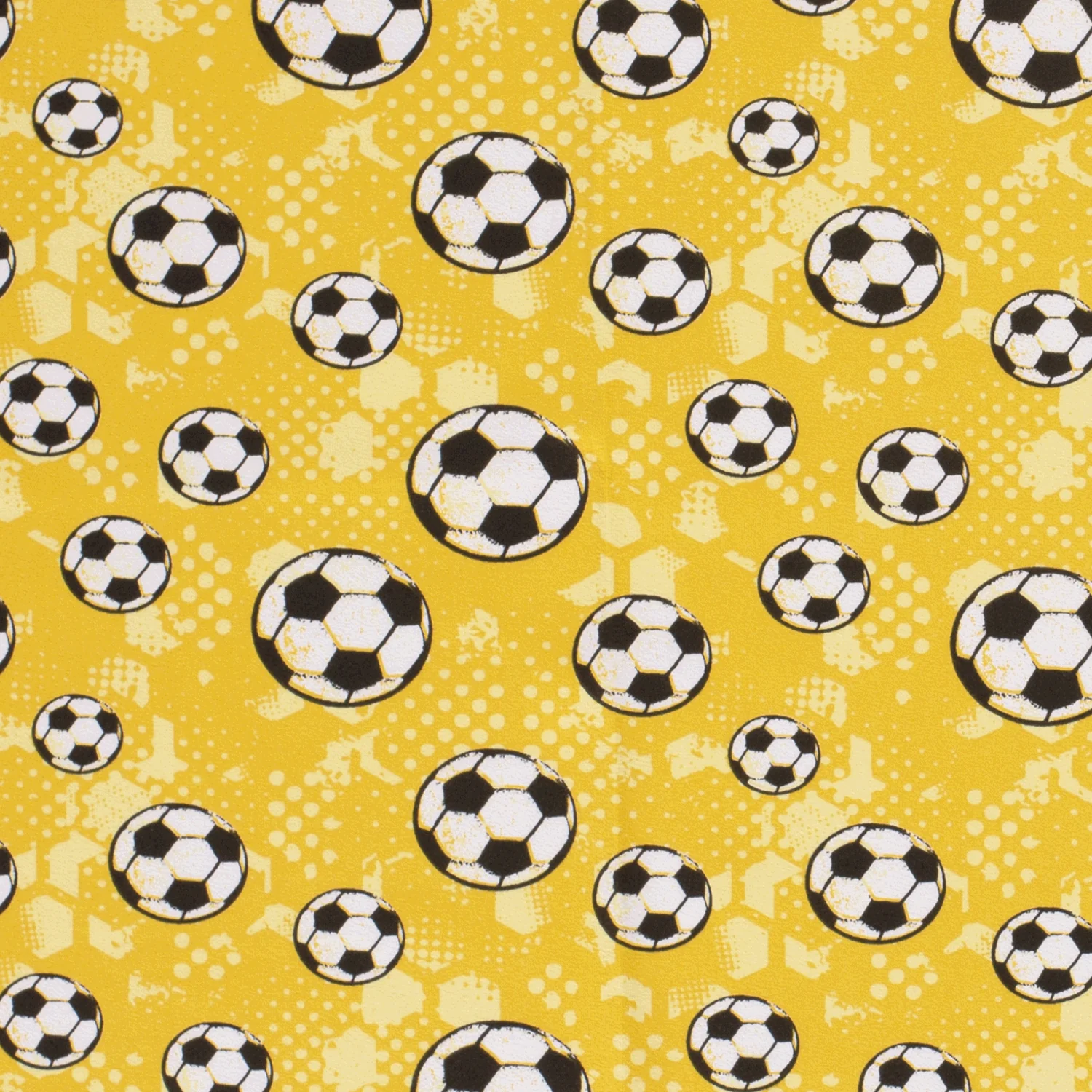 Der hochwertige Baumwolljersey in Ocker mit Fußballmuster ist perfekt für kreative Nähprojekte rund um Sport und Freizeit. Der Stoff überzeugt durch seine weiche, elastische Qualität und ist besonders angenehm auf der Haut zu tragen.