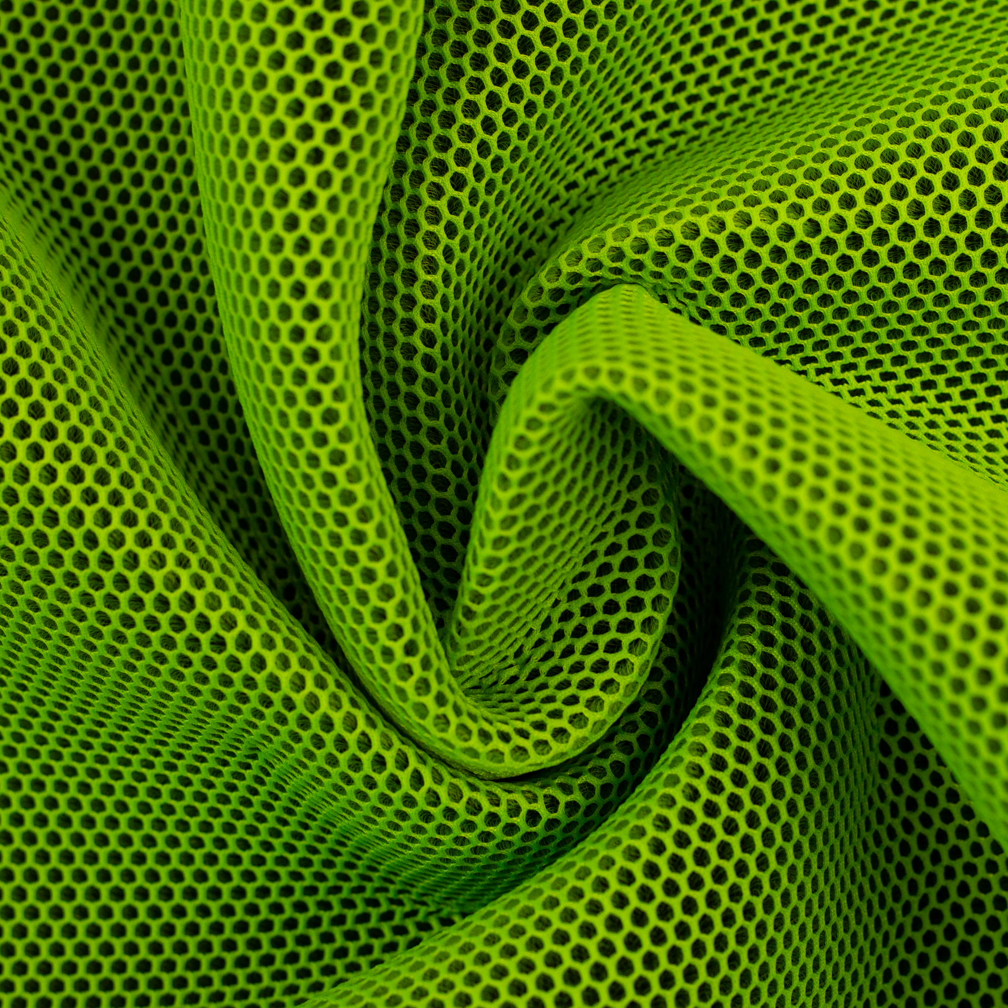 Schnell trocknendes, luftdurchlässiges Gewebe mit ausgeprägter 3-D-Struktur. Ober- und Unterseite des Stoffes werden durch stabile Microfasern auf Abstand gehalten, wodurch eine polsternde Wirkung, gute Formstabilität und eine markante Haptik entstehen. Das Material ist leicht, robust, wasserabweisend und leicht elastisch. Durch die offene Struktur wird eine sehr gute Luftzirkulation erreicht, während gleichzeitig Schutz und Stabilität geboten werden.
