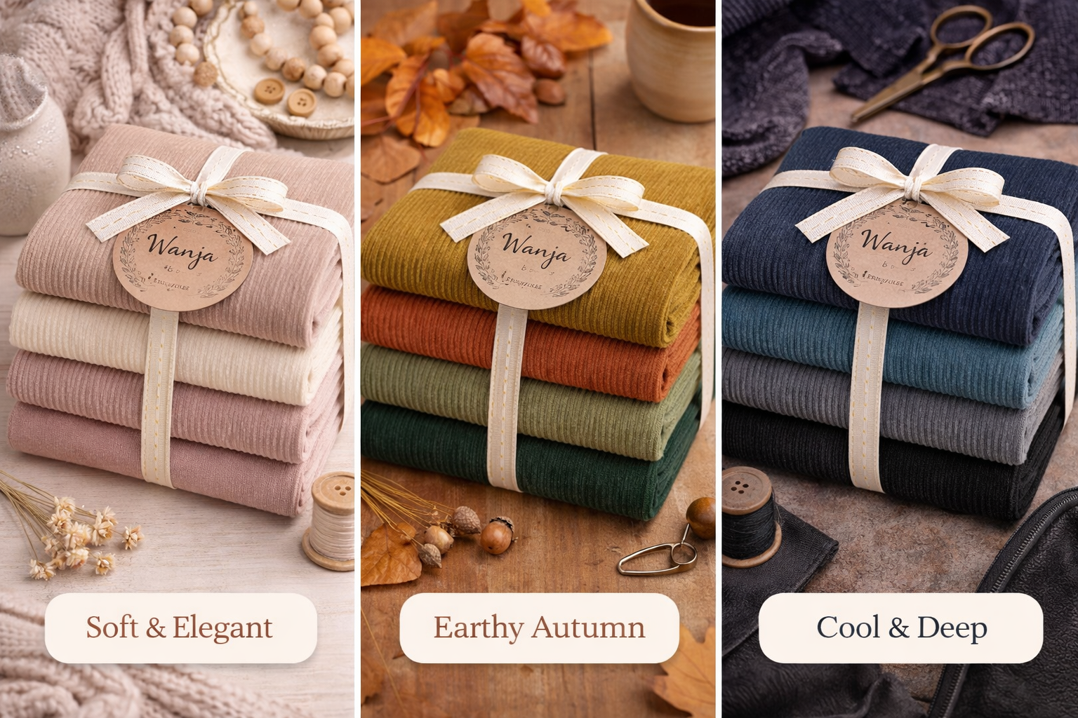 Entdecke unser hochwertiges Wanja Stoffpaket von Swafing – ein edler Breitcord Samt mit samtweicher Oberfläche und markanter Rippenstruktur. Dieses Stoffpaket besteht aus 4 farblich perfekt abgestimmten Farben, ideal für moderne Näh- und Dekoprojekte.